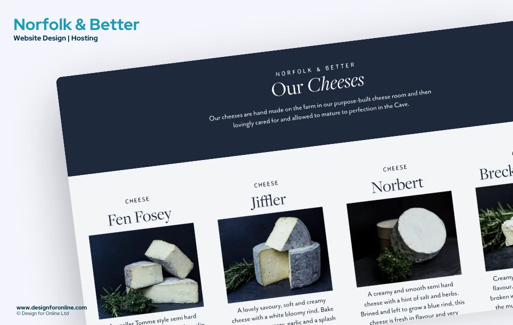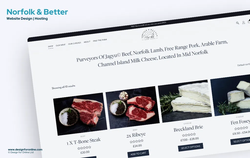 We were approached by Norfolk & Better in April of 2024 to design and build their eCommerce website for their farm and their brand Norfolk & Better. The brief, to create a modern website which will showcase aspects of the farm, their cheese, meat, including their own Jagyu⢠Beef and allow people to order meat packs and cheese online.