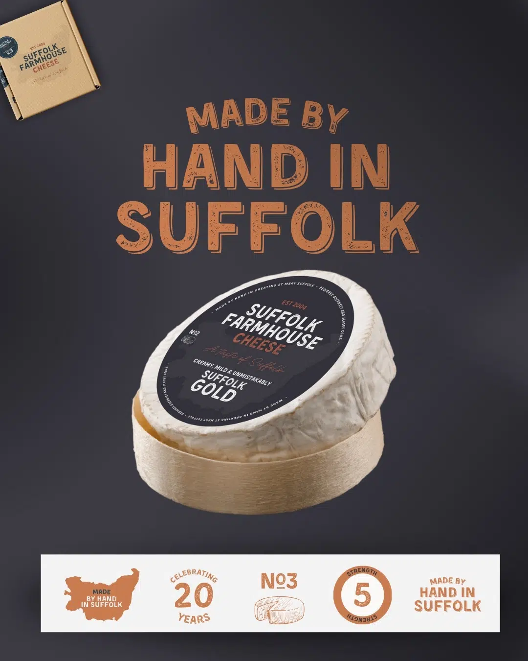 In 2024 and 2025 we developed a new brand for Suffolk Cheese which is to be developed further refining on their heritage as well as distinguishing their products with easy recognisable packaging. Our branding will adapt with their other ranges as we refine their brand and messaging moving forwards.